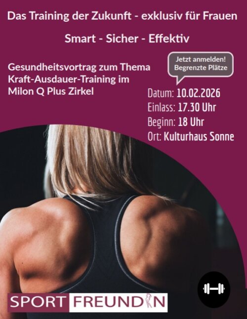Hallo Sportfreundin, wir veranstalten am 10.02.2026 ab 17.30 Uhr einen Gesundheitsvortrag mit dem Motto Kraft-Ausdauer-Training im Milon Q Plus Zirkel der auch dich interessieren könnte. Weitere Informationen findest du im[…]